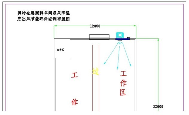 风压可达到 200 帕,可在室内形成正压,将厂房里大量高温异味空气从打 开的门窗排往室外。空调安装时保证足够的高度,