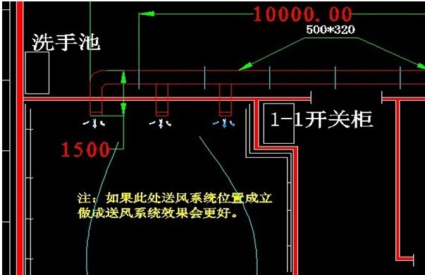 考虑新风洁净及冬季使用,设计成独立供水。机加工车间新风管道送入,管道长度32米,出风咀5个,设计成负压,